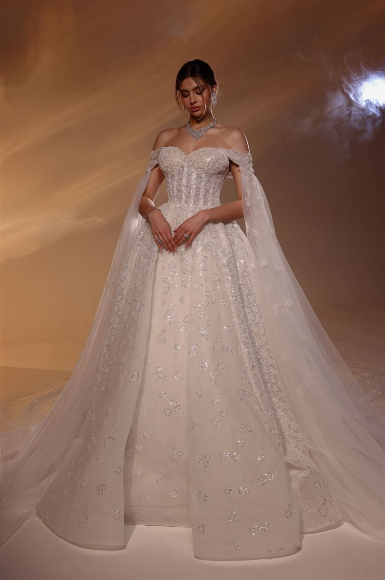 "aurora" - sweetheart - corset - off shoulders cape - princess cut