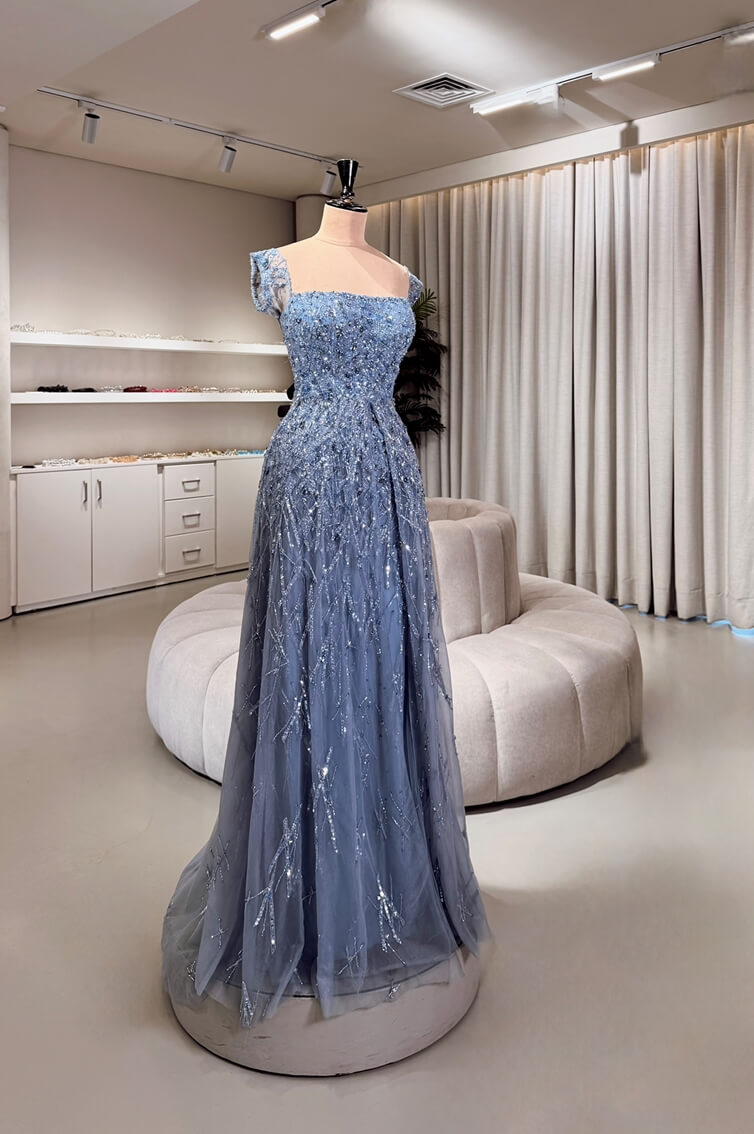 " stormy blue " - long - strapless - corset - mermaid - gloves - overskirt