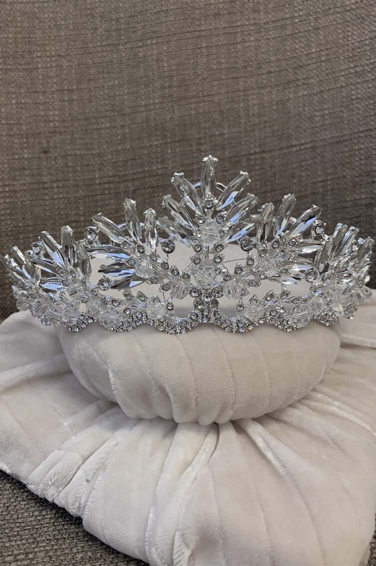 "ARIEL" is a blue broche headpiece by Malkit that is so softly embellished.
