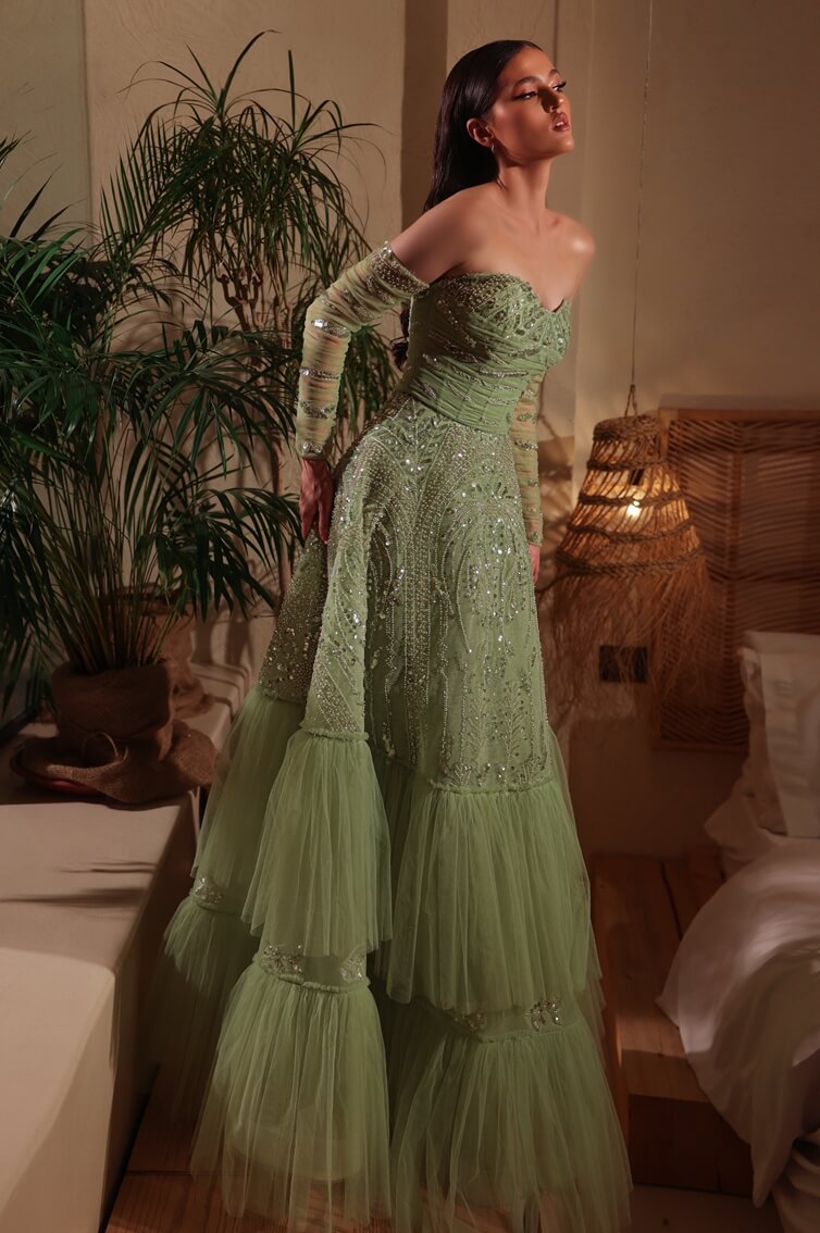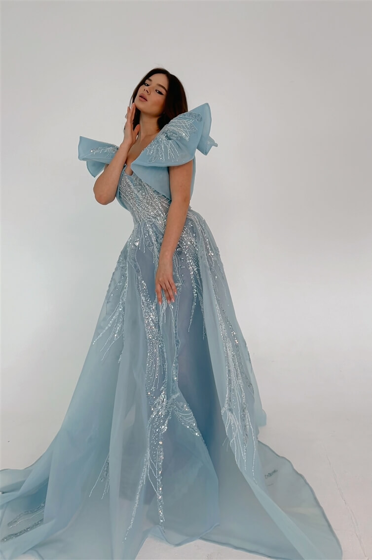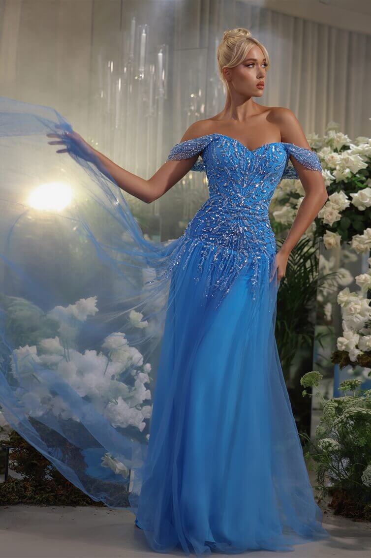 " alaska " - long - strapless - sleeve - off-shoulder - princess -ruffles